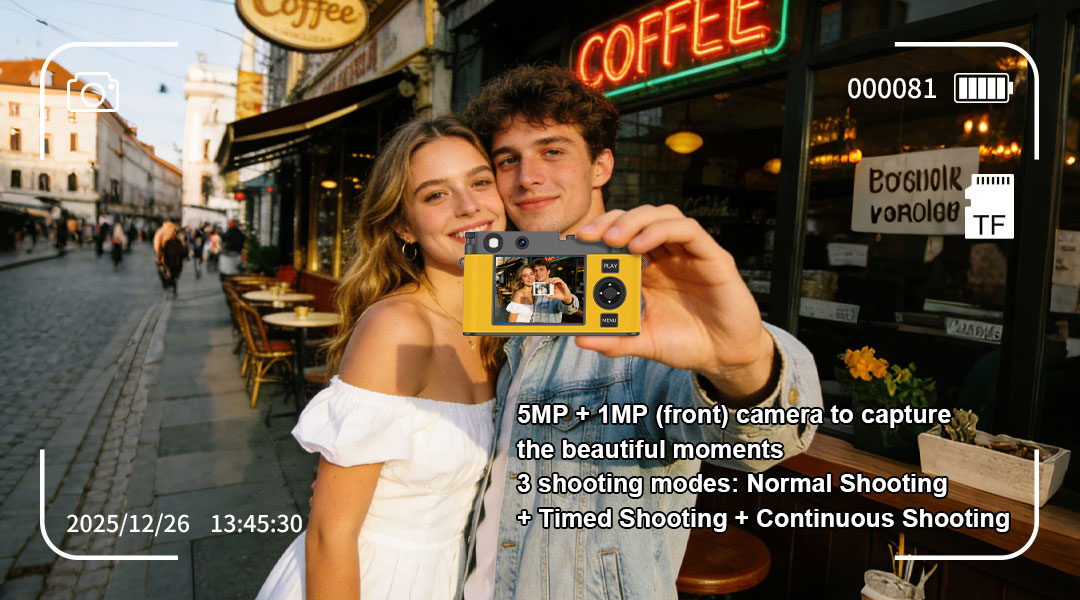 Equipped with a 2.4-inch rear IPS screen and a 1.3-inch front screen, framing selfies and recording vlogs has never been easier.